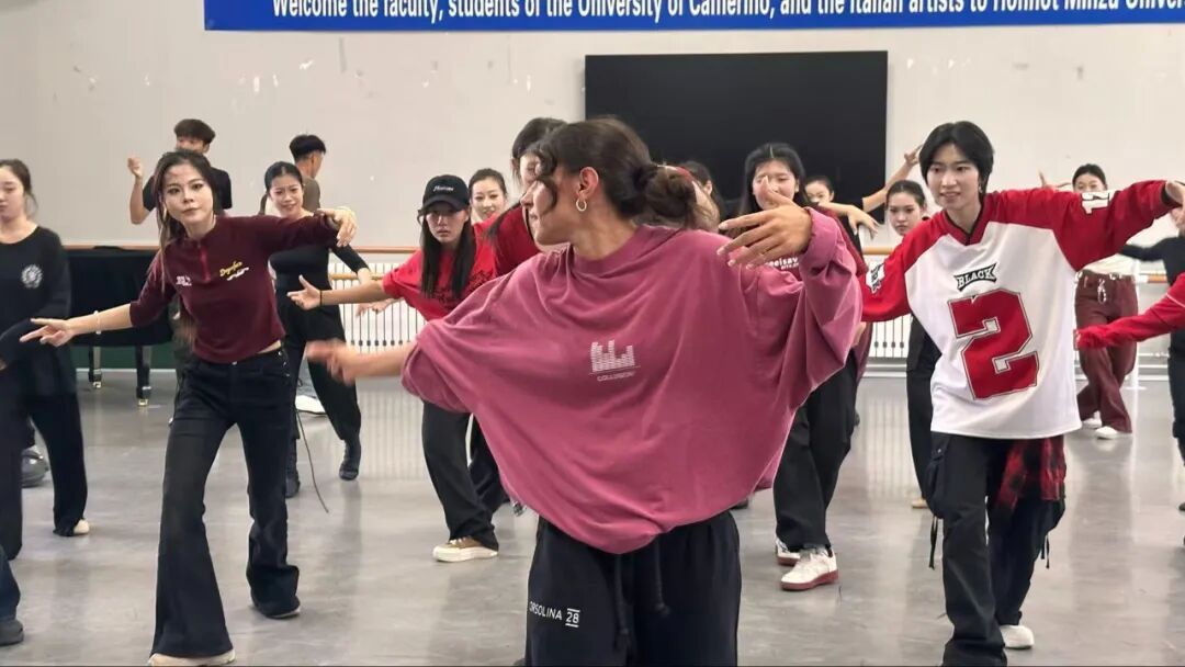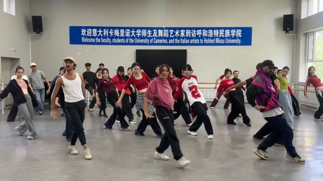 上午9时,活动在音乐学院舞蹈教室正式拉开帷幕。我校团委大学生艺术团和街舞社团的27名学生共同带来了精彩的演出。其中,大学生艺术团带来的民族舞《四海欢歌》尤为亮眼——舞者以极具张力的肢体语言,将民族舞蹈的奔放热情展现得淋漓尽致,既彰显出蒙古族传统艺术的深厚底蕴,更成为传播中华文化的生动载体,赢得了意大利等国师生的一致好评。