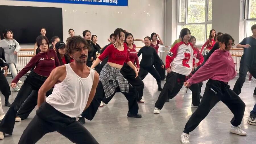随后,街舞社团呈现了节目《Flame Dance》,巧妙地将潮流街舞元素与艺术创意相结合,以青春洋溢的姿态诠释了多元文化的碰撞与共融。互动环节更将氛围推向高潮,我校街舞社团成员与意大利青年舞蹈演员携手登台,在默契配合中共同演绎精彩街舞。现场掌声、欢呼声此起彼伏,热烈氛围持续升温。