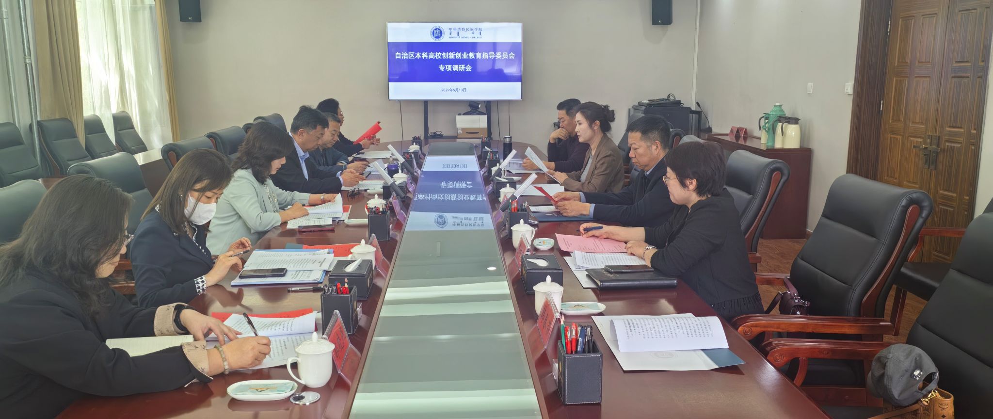 5月13日,自治区本科高校创新创业教育指导委员会调研组冯平一行6人莅临我校就创新创业教育工作展开专题调研。学校党委委员、副校长双虎出席调研座谈会并致辞,创新创业中心全体人员参与座谈交流。