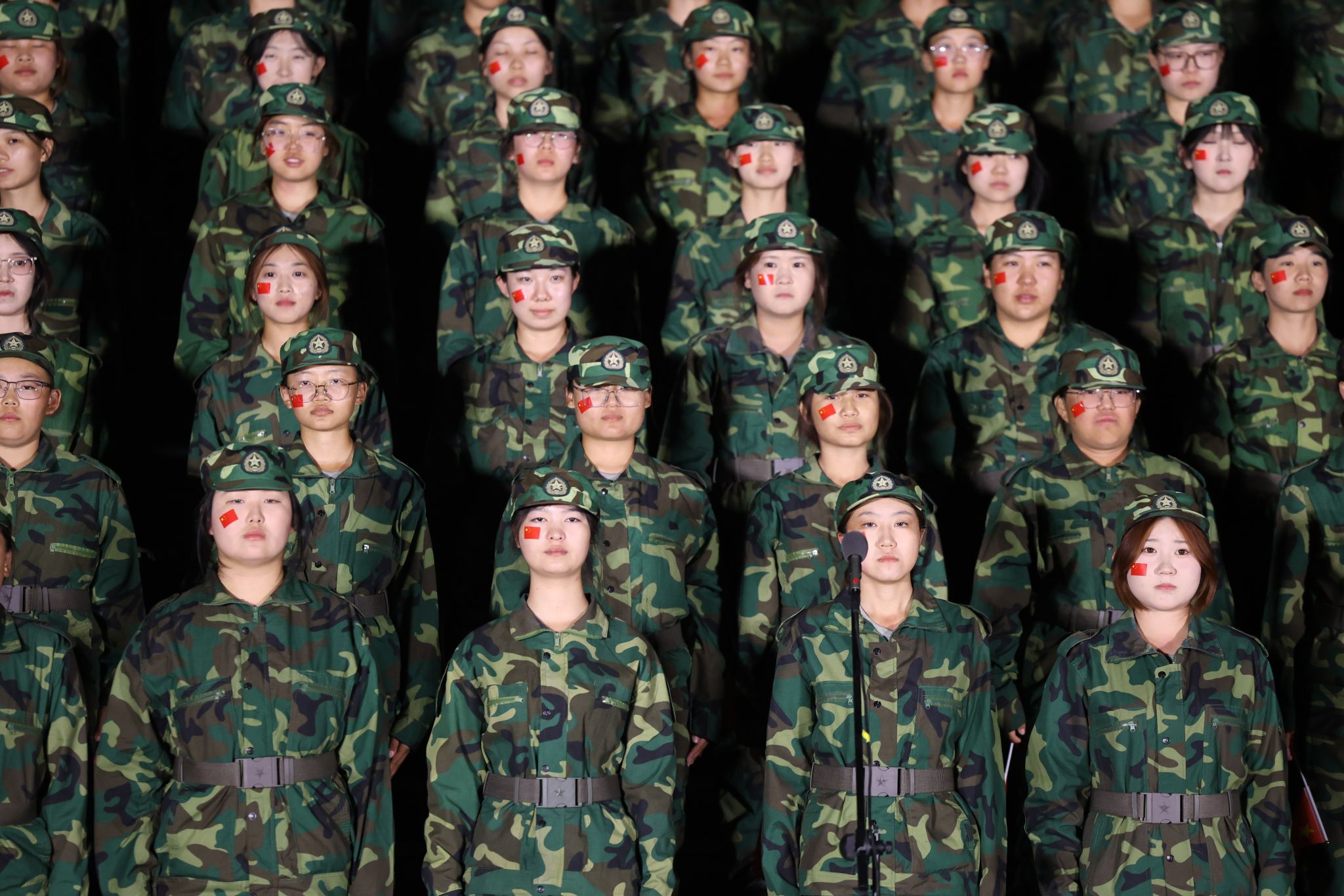 本次比赛以“唱响军旅赞歌,展现新生风貌”为主题,共有17支新生代表队依次登台表演。按照比赛规则,每支队伍需完整演绎一首自选歌曲。其中《精忠报国》《打靶归来》《祖国不会忘记》《团结就是力量》等比赛曲目将现场氛围推向高潮,展现出2025级新生军训队伍强大的凝聚力,更彰显了呼民院学子的活力与朝气。