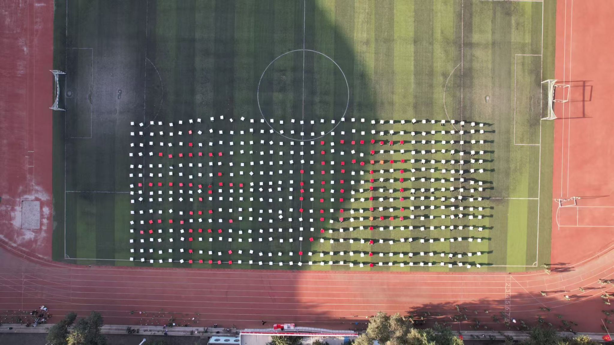 比赛尾声,恰逢教师节前夕,全体新生手持“老师您辛苦了”“祝老师节日快乐” 等字样的灯牌,在操场上整齐亮相,以温暖的灯光与真挚的祝福,向教师表达敬意。