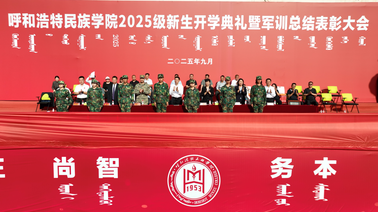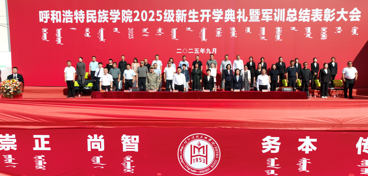 金秋送爽启新程,迷彩青春铸华章。9月14日下午,学校在南操场隆重举行2025级新生开学典礼暨军训总结表彰大会。校党委书记刘九万,党委副书记、校长王敏,党委副书记格根哈斯,党委委员、副校长高喜天,党委委员、副校长双虎等校领导,新城区人民武装部军事科参谋富昱陶及承训官兵,各职能部门、学院负责人,2025级新生班主任及全体新生共2500余人参加大会。双虎主持大会。
