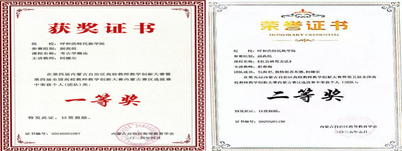 学院以提升人才培养质量为核心目标,积极推进课程建设与教学能力的协同提升。课程建设成果斐然,《田野调查》等3门课程荣获校级“一流课程”称号,《考古学概论》等2门课程则获得自治区级“一流课程”认定,形成了梯度化的优质教学资源体系。教师在各类竞赛中表现卓越,1人斩获自治区高校教师创新大赛一等奖,1人获得二等奖,另有1人荣获全区课程思政大赛专业教育二等奖,充分展现了学院教师的雄厚实力。课程与师资的双向提升,有效强化了教学竞争力,为学科发展和高素质人才的培养奠定了坚实基础。
