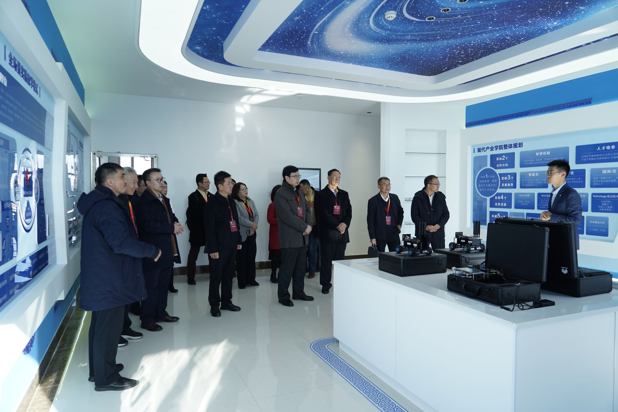 入校评估期间,专家组集中考察了学校铸牢中华民族共同体意识教育馆、校史馆、非物质文化遗产教学成果展、华为云学院鲲鹏中心、可信大数据与人工智能院士工作站、师范生技能训练中心、产品工作室、体育馆、图书馆、学生公寓等场所,通过听课看课、调阅材料、座谈访谈、集中考察、随机走访、考察实践基地等多种方式,深入了解我校本科教育教学工作特色成效,挖掘亮点、查找问题,对我校本科教育教学工作进行了全面细致的“把脉问诊”。