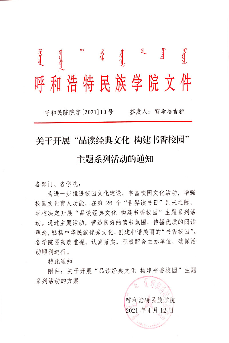 关于开展“品读经典文化 构建书香校园”主题系列活动的通知