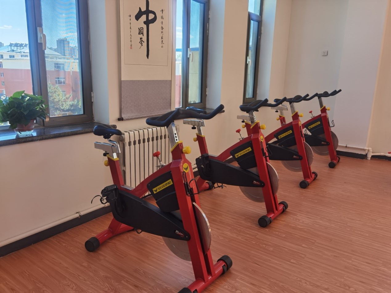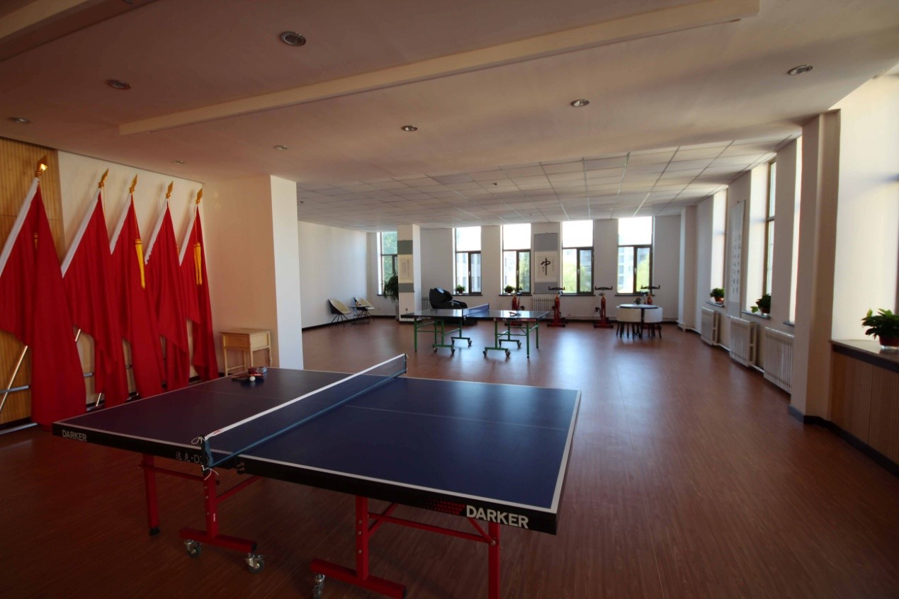 运动健身区:职工之家活动室(工会3楼):配有乒乓球案、动感单车、瑜伽、舞蹈活动室、更衣室等