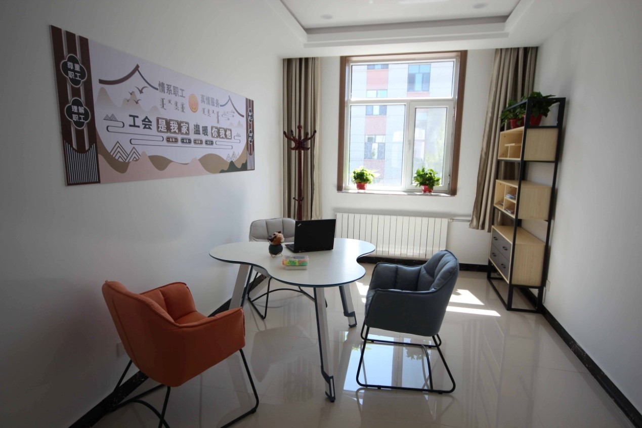 休闲区:(工会3楼):配有按摩椅、休闲桌椅、会议桌椅、茶具、各种棋类
