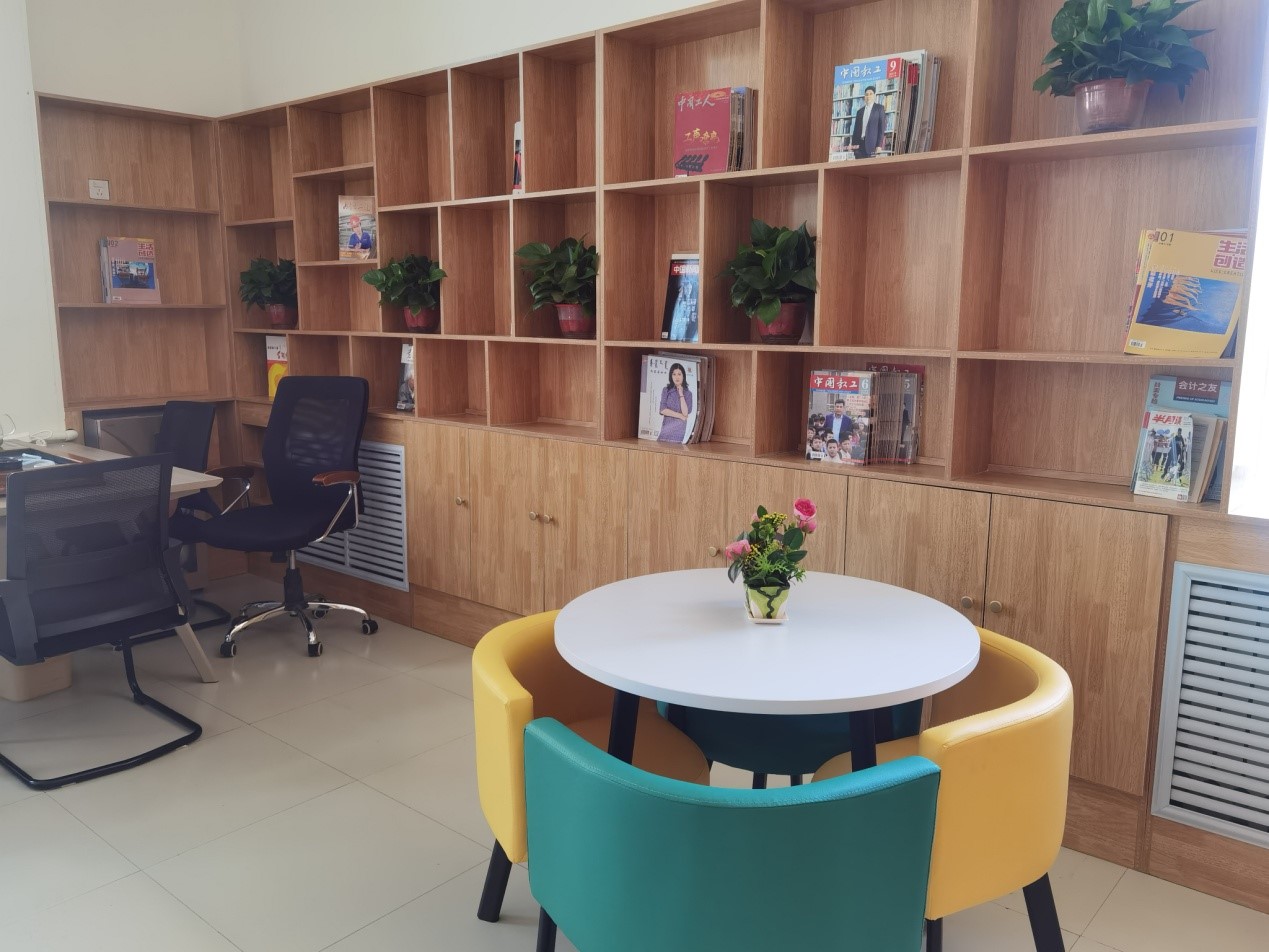 怡心居(职工公寓2楼北侧):配有饮水机、休息桌椅、棋类、书籍等