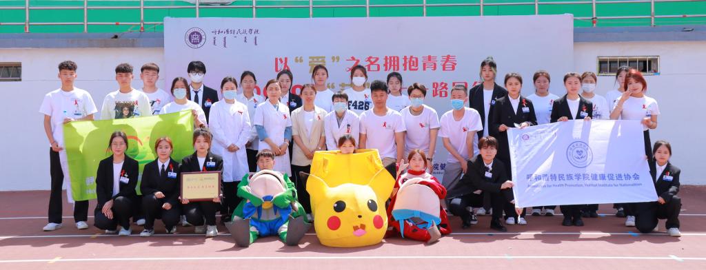 为深入推进主题教育走深走实,将主题教育与普及宣传校园卫生健康知识相结合,营造全校参与艾滋病防治工作的良好氛围, 6月10日,学校后勤管理处医务所邀请呼和浩特疾病预防控制中心阳光工作组和学校健康促进协会在学校南操场上共同举办了“防艾健康教育”主题活动。呼和浩特市疾病预防控制中心结核病与艾滋病防治所副所长钱艳艳、呼和浩特阳光工作组负责人樊泽冉、学校后勤管理处医务所全体医护人员以及学校17个二级学院的600余名同学参加了本次活动。