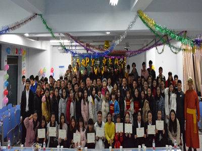 12月29日19时30分,由我校的学生组织,大学生自我管理委员会、大学生宿舍管理委员会和大学生心理协会联合主办的《践行十九大•共筑中国梦》元旦联欢晚会在都林楼306教室举行。学生工作处副处长陈青春等老师以及15个系(部)学生会主席参加了晚会。