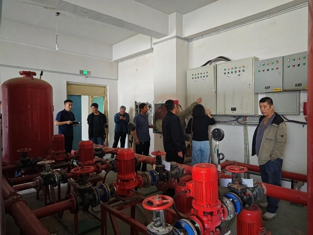 随后,在后勤管理处负责人、基础建设维修科、安全管理处消防科、学校消防维保单位相关人员及评估单位、施工单位负责人的陪同下,专家组深入各楼宇现场开展实地审验。围绕消防设施设备布置合理性、消防水源及管网畅通性、应急照明与疏散标识规范性、防火分区划分合规性等关键维度,细致核查并指出当前存在的不足,针对性提出改造优化意见。