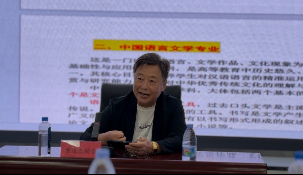 2025年9月4日下午,中国社会科学院民族学与人类学研究所研究员、博士生导师曹道巴特尔教授应邀来到我校文学院,以《中国语言文学与北疆文化建设》为题目进行专题讲座。本次讲座由文学院院长高娃教授主持,全院师生共同参与。