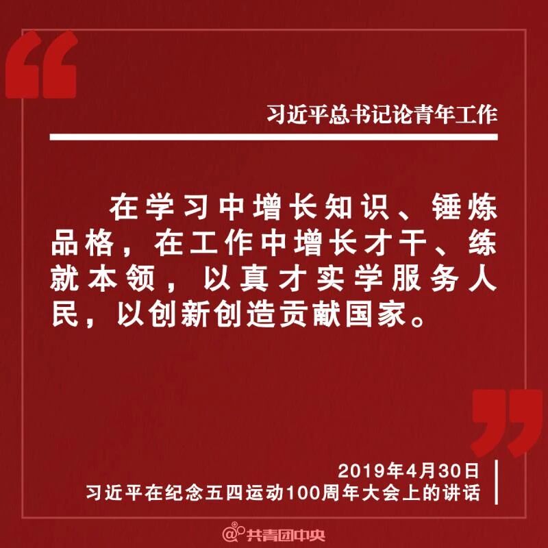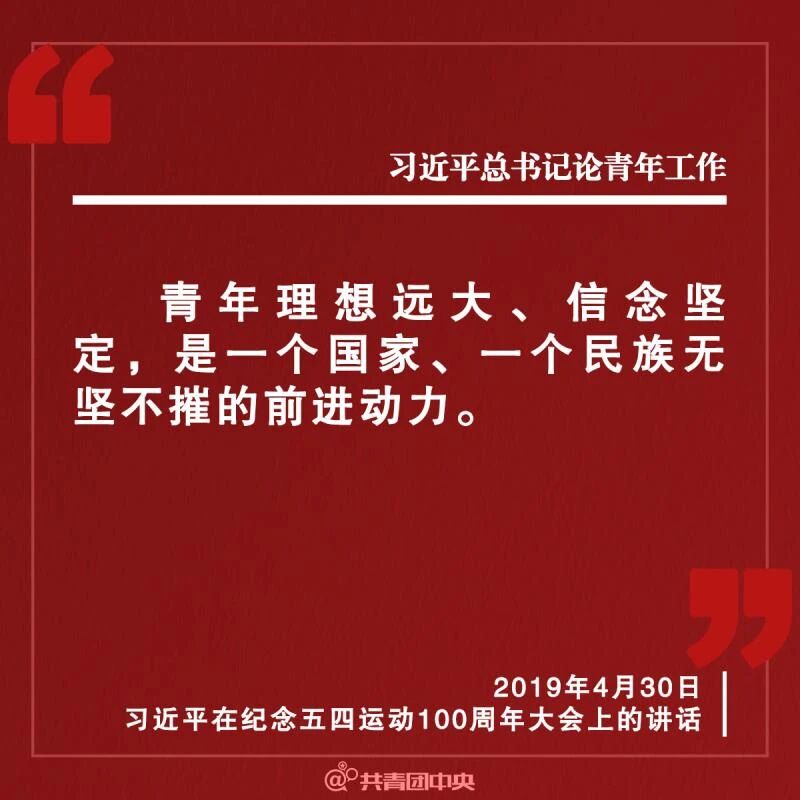 “历史和现实都告诉我们,青年一代有理想、有担当,国家就有前途,民族就有希望,实现我们的发展目标就有源源不断的强大力量。”2013年5月4日,习近平总书记在同各界优秀青年代表座谈时指出。