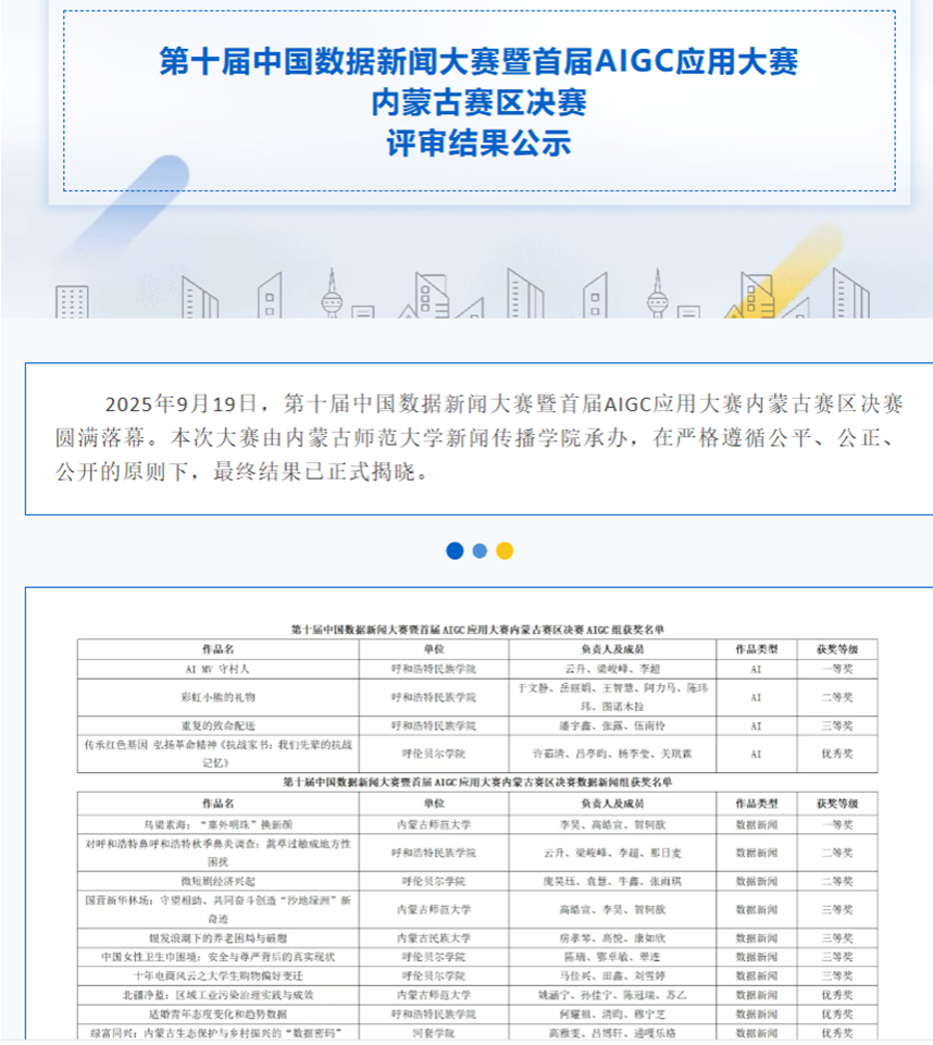 近日,由中国数据新闻大赛暨AIGC应用大赛组委会主办的首届AIGC应用大赛中,新闻传媒学院2023级网络与新媒体专业学生凭借AIGC应用能力与创新成果斩获佳绩。