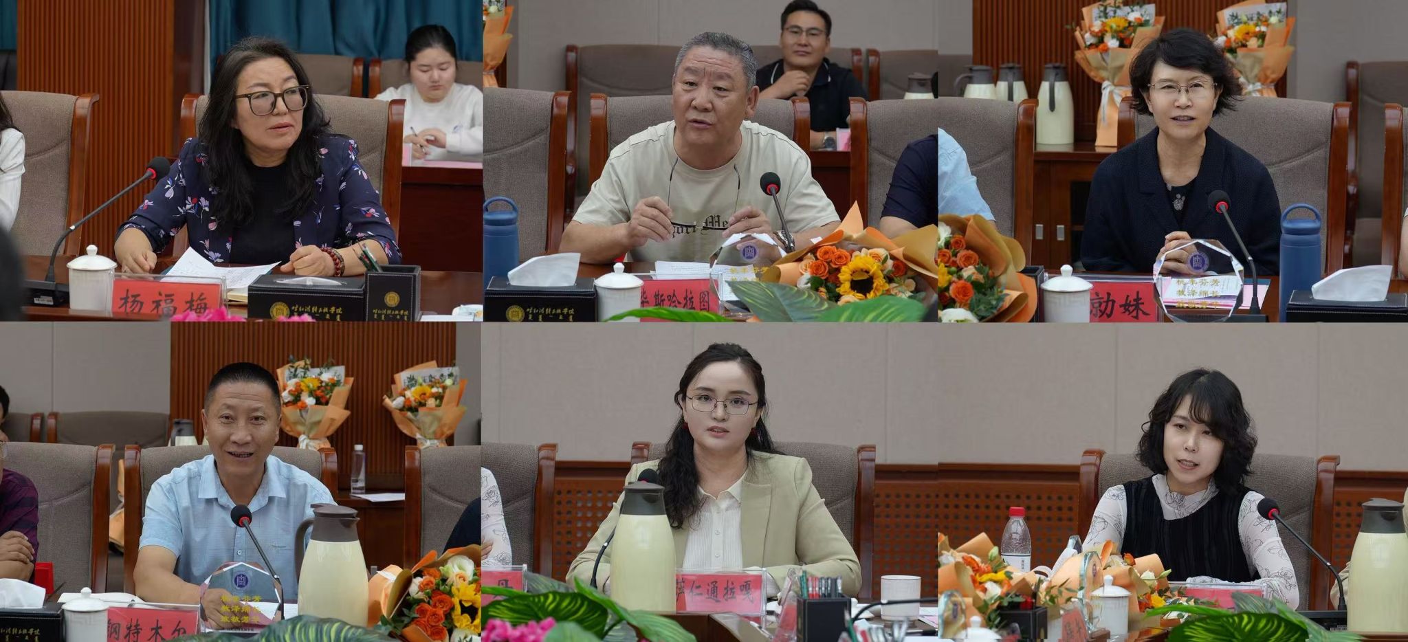 本次座谈会以“以教育家精神铸魂强师,谱写教育强国建设华章”为主题,会上,学校工会主席杨福梅宣读校龄三十年教职工名单,师范生技能训练中心主任胡毕斯哈拉图、文学院教授杜勍妹、实验室管理中心主任钢特木尔代表校龄三十年教职工进行了发言,讲述了自己深耕校园30年用青春书写的奉献故事。青年教师代表马克思主义学院萨仁通拉嘎博士,外国语学院吴丹副教授发言,表达了对老教师们的崇高敬意和感激之情。