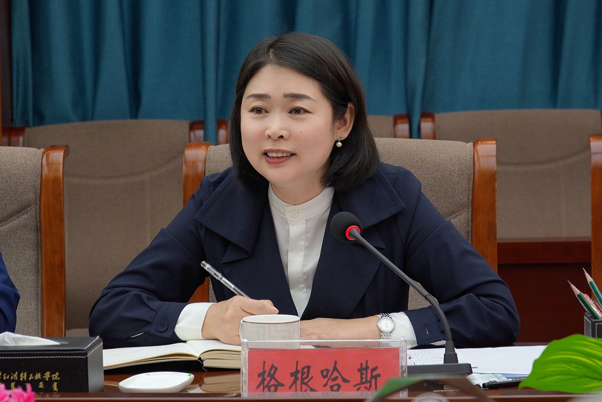 格根哈斯主持座谈会时希望广大教师大力弘扬教育家精神,自觉涵养高尚师德,争做“四有”好老师,当好“四个引路人”,不断提升自身的服务力和贡献力,为培养德智体美劳全面发展的社会主义建设者和接班人,为加快推进学校事业高质量发展作出新的更大贡献。