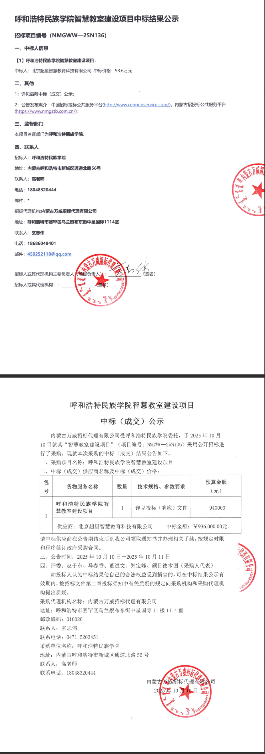 开云手机站官方版在线登入智慧教室建设项目中标结果公示