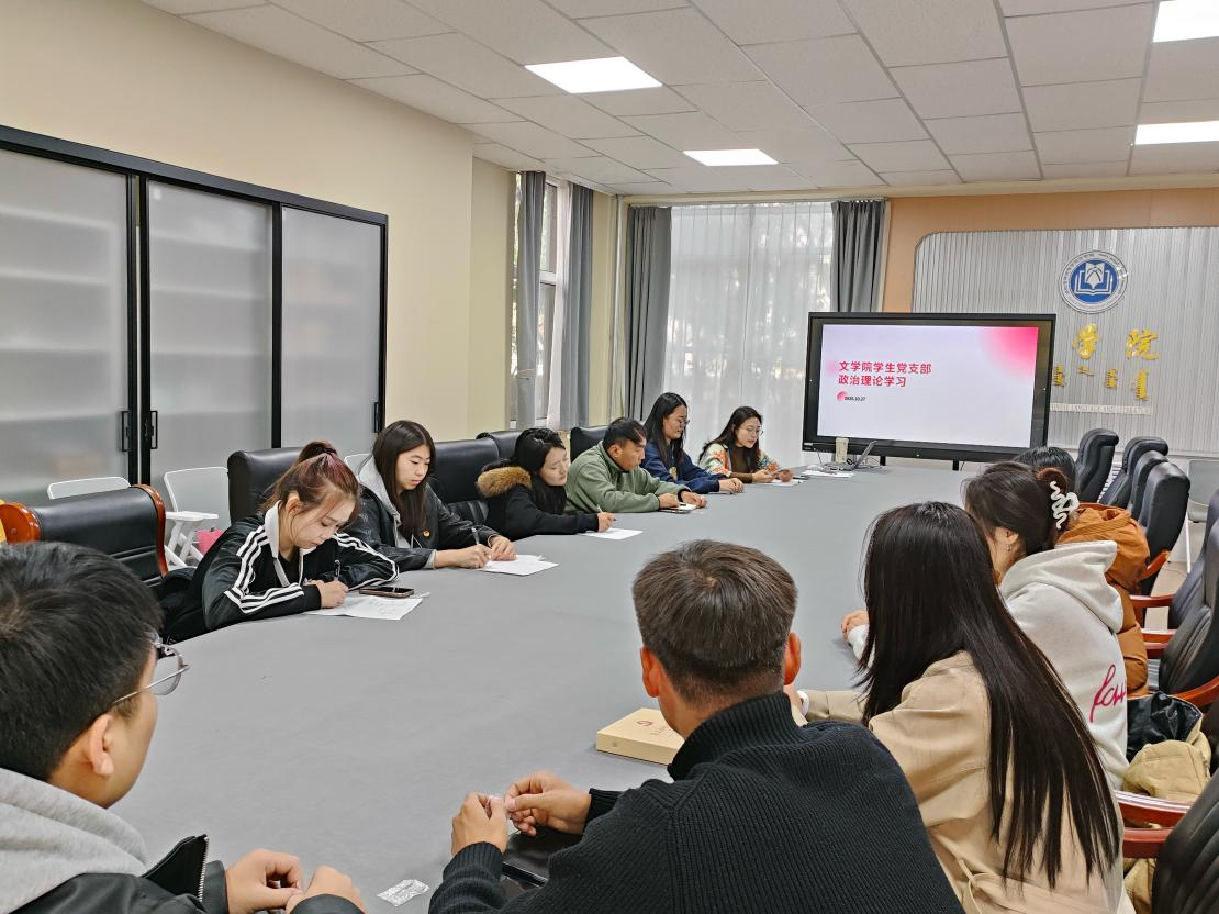 为深入学习贯彻党的二十届四中全会精神,2025年10 月27日下午3点,文学院学生支部20余名在校学生党员在尚智楼109会议室开展专题学习会,学生支部书记刘晓主持会议。