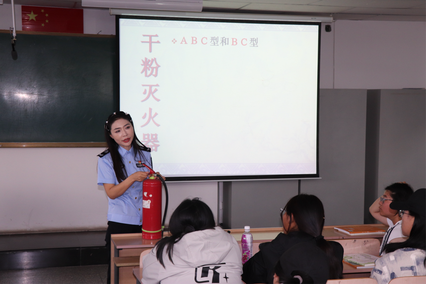 随后,保卫处工作人员现场演示了灭火器等消防器材的正确使用方法,并指导同学们进行实际操作。大家积极动手体验,在实践中掌握了基本的消防技能。