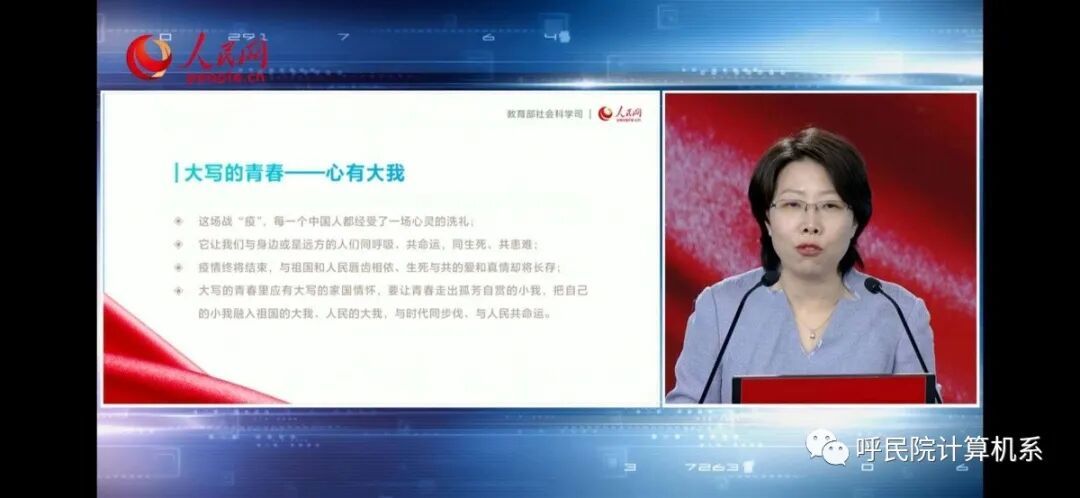 3月9日下午,一堂全国大学生共同参与的思政课开讲了。计算机科学与信息工程学院提前筹划,积极组织,按时观看了教育部社科司与人民网联合组织的“全国大学生同上一堂疫情防控思政大课”直播,学院从大一到大四共计700余名学生通过网络上了堂既生动感人又充满责任担当的思政课
