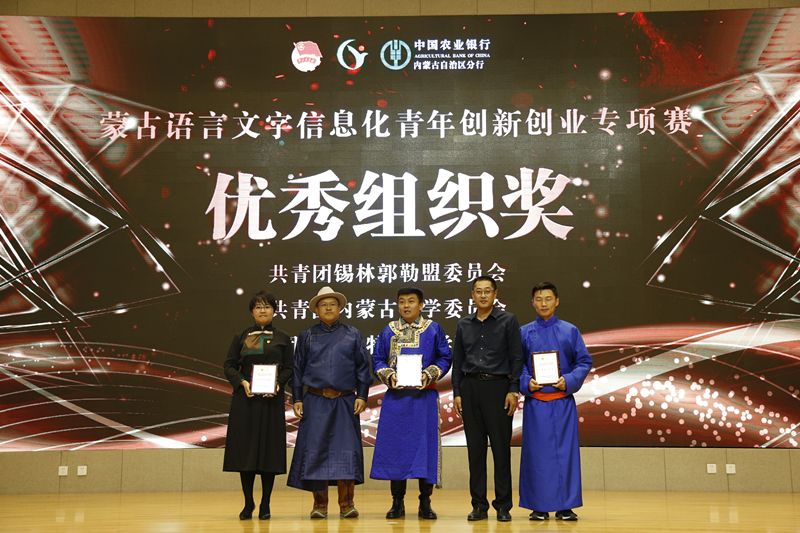 9月29日,由共青团内蒙古自治区委员会、网信办、民委、扶贫办、锡林郭勒盟盟委、行署等9家部门主办,由内蒙古青年创业就业服务中心、共青团锡林郭勒盟委员会、盟农牧局 、盟工信局、盟网信办、盟扶贫办、盟农行等部门共同承办的“农行杯”第六届“创青春”内蒙古青年创新创业大赛蒙古语言文字信息化专项赛在锡林郭勒盟圆满落幕。自治区团委副书记闫立志、自治区党委网信办互联网行业党建办副处长何金泉、自治区扶贫办开发指导处副处长刘三军、锡盟盟委副书记、政法委书记包国权、盟农牧局局长斯日古楞、盟工信局局长王延功、盟团委书记周玉龙、盟委统战部副部长、盟宗教局局长赛音巴雅尔、盟委网信办副主任纳恩丁、盟扶贫办主任杨宏伟、盟团委副书记萨楚仁、盟农行副行长海日汗、锡林浩特农村合作银行行长郭维州等盟直机关相关领导及内蒙古青年创业联盟导师、资深蒙古语言专家、参赛选手、创业青年代表、高校大学生在内共计200余人参加了此次大赛颁奖礼。