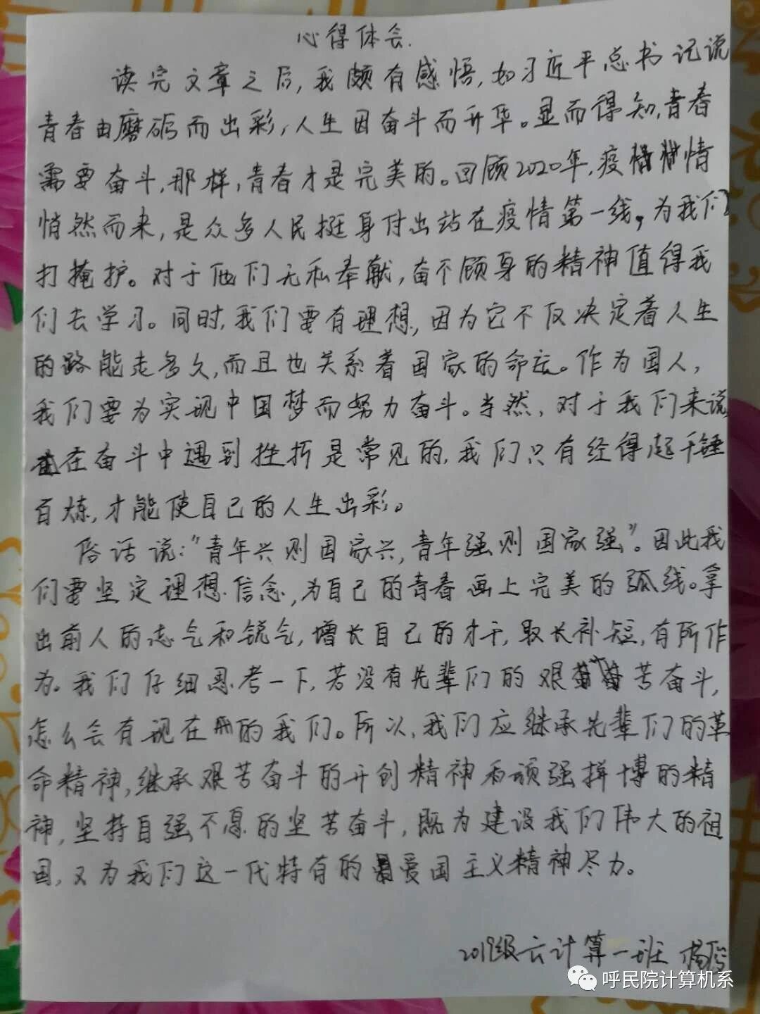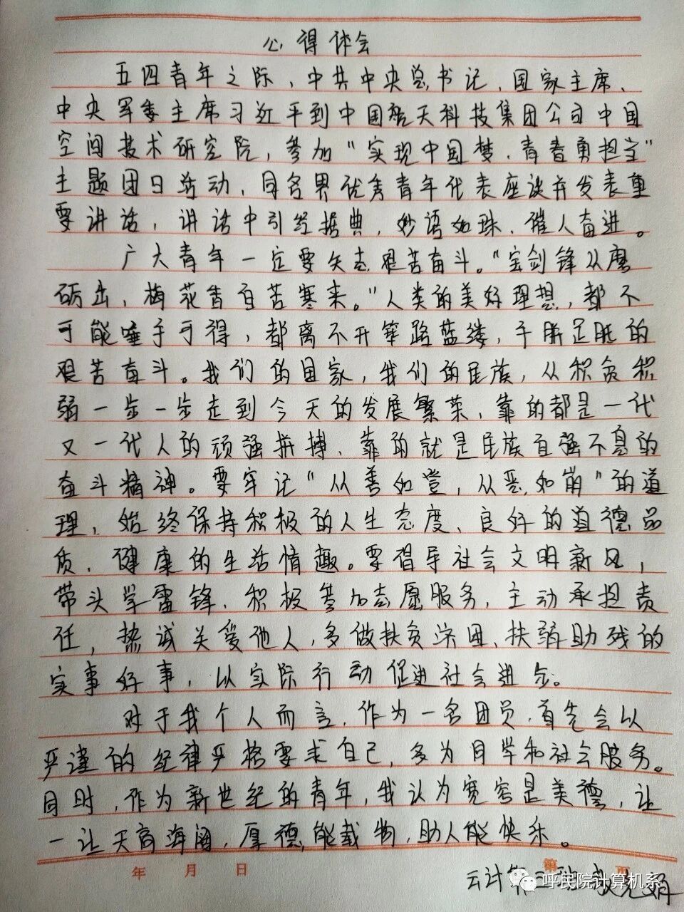 计算机学院各团支部认真领悟“习近平总书记给青年送出的寄语”,并认真写好心得体会。我们在此次学习中深刻体会到,新时代中国青年要继承和发扬五四精神,同亿万人民一起在实现中华民族伟大复兴中国梦的新长征路上奋勇搏击!