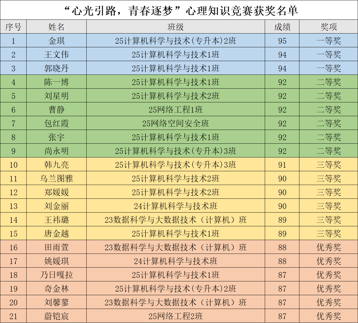 为普及心理知识,增强学生心理健康意识,营造积极健康的校园氛围,促进学生之间的交流互动,我院于2025年11月3日中午,在尚智楼314教室,举办“心光引路,青春逐梦”心理知识竞赛。