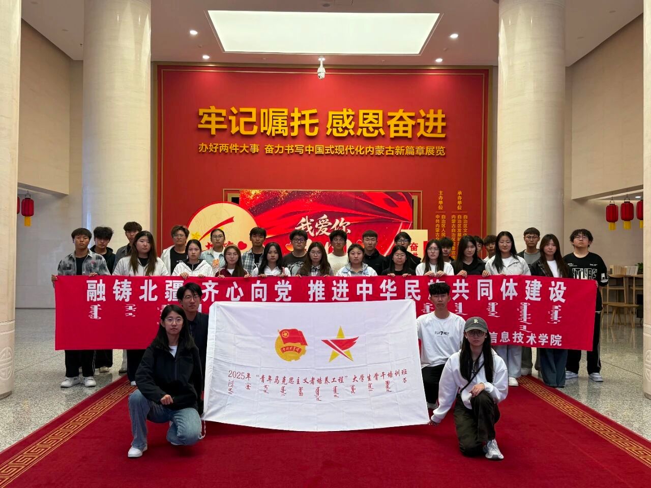 为扎实推进民族政策宣传月活动,引领青年深刻理解党的发展历程,感悟时代精神,2025年9月30日,我院团总支组织入团积极分子前往内蒙古自治区展览馆,开展了“融铸北疆、齐心向党,推进中华民族共同体建设”主题实践活动。