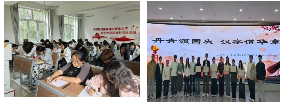 活动以赛促学、以赛传情,不仅助力学生提升语言文字素养,更在国庆前夕以汉字为媒,传承文化根脉,营造了“说普通话、写规范字”的良好氛围,为教育强国建设和新时代语言文字事业发展贡献马院力量。