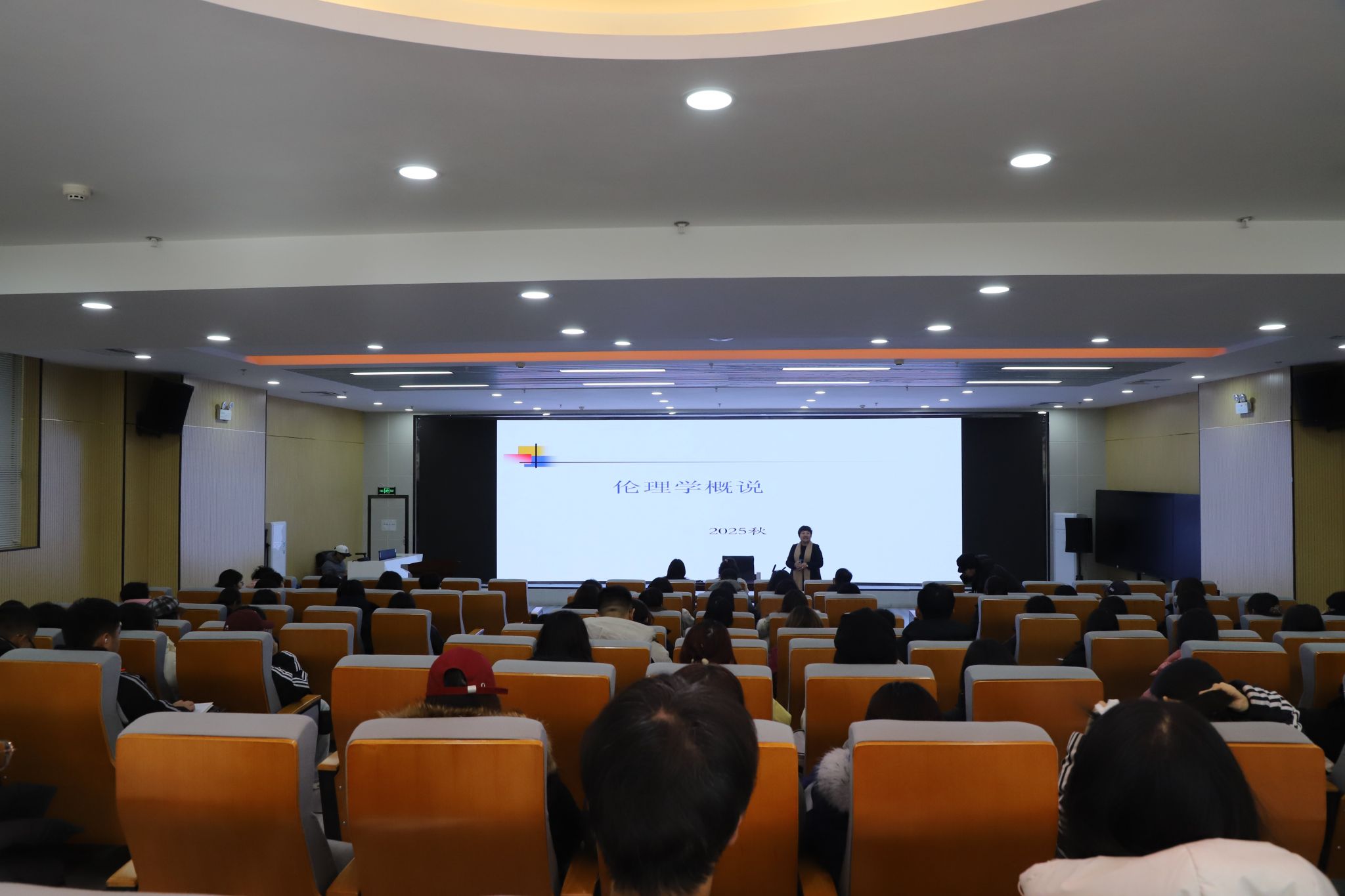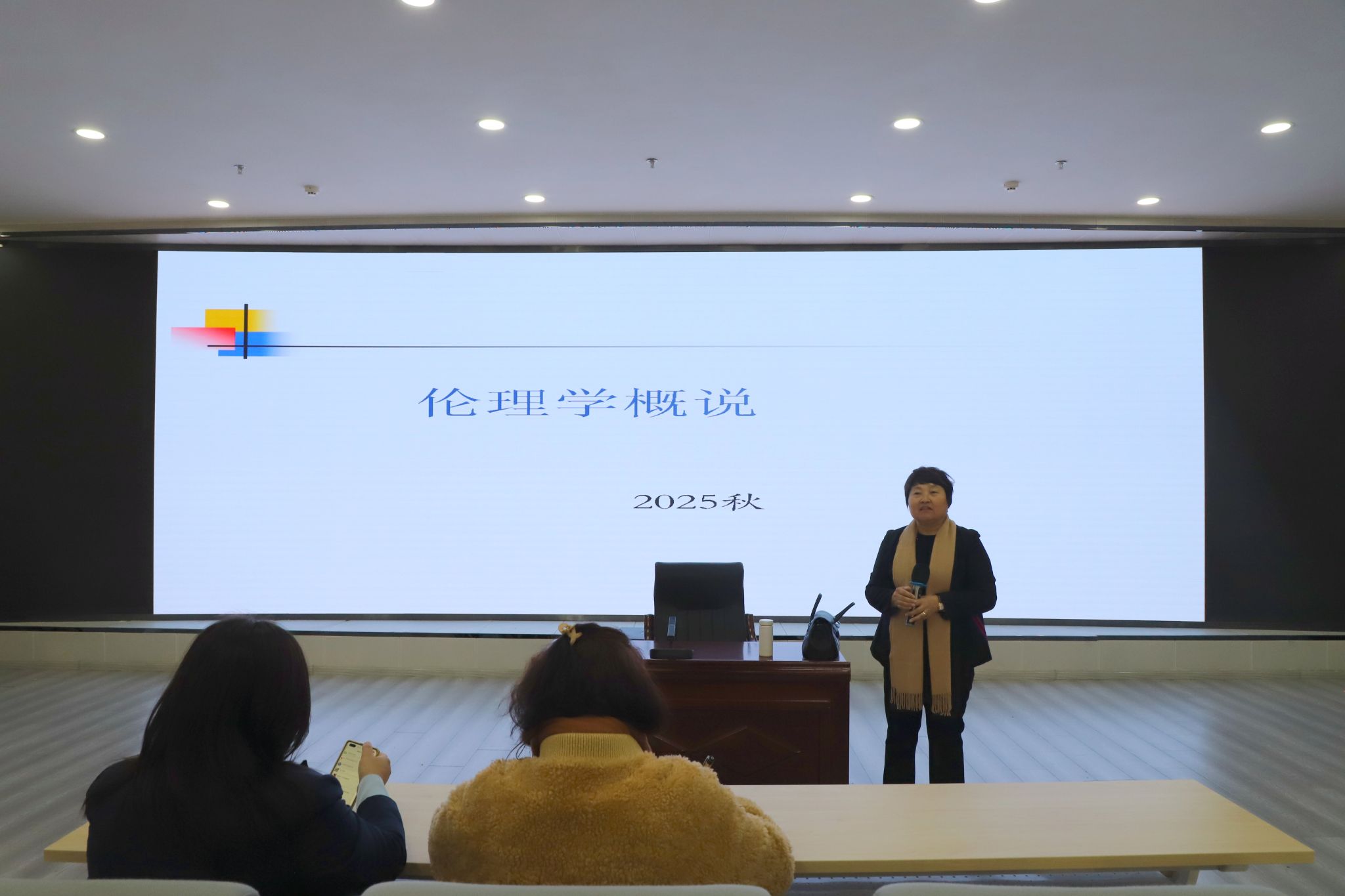 为进一步提升学生的思想政治理论素养,丰富学生的哲学社会科学知识体系,11月24日,马克思主义学院在思想政治理论课实践教育基地开展了“名师进课堂”系列活动。此次活动特邀中央民族大学宝贵贞教授,为同学们带来了一场关于伦理学概说”的专题讲座,马克思主义学院相关负责人、任课教师及2025级思想政治教育1、2班全体学生参加。