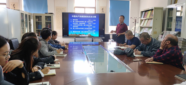 王福清院长结合“不忘初心,牢记使命”主题教育的背景,从开展主题教育重大意义、目标要求,学习了习近平总书记在“不忘初心,牢记使命”主题教育工作会议上的重要讲话精神入手,结合中央革命根据地和中华苏维埃共和国的历史,阐述了井冈山精神、苏区精神、长征精神、延安精神、抗战精神、西柏坡精神的内涵。随后,王院长结合蒙古学学院(翻译学院)历史与发展,深刻阐释了用中国革命精神培养优秀教学科研人才的科教报国初心。