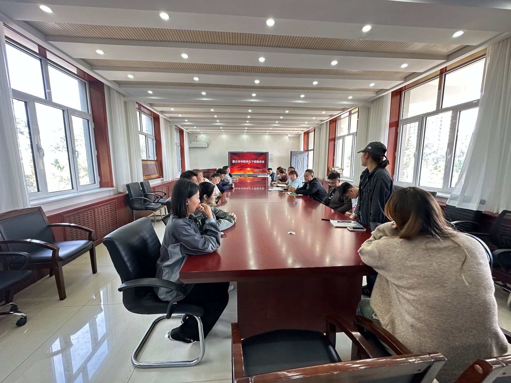 为进一步加强学院与学生之间的沟通交流,深入了解学生的学习生活需求,提升教育教学、生活服务质量,2025年9月18日下午3:00,蒙古学学院在崇正楼316会议室举办了学生座谈会。学院党总支书记陈青春、党总支副书记红梅、副院长宝金良、辅导员程刚、各班班干部、学生党员、学生代表等40余人参加。