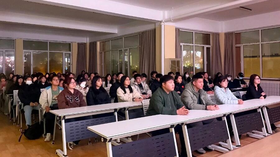 2025年11月4日晚,我校学生会组织80余名学生干部齐聚“青春驿站”大学生活动中心四楼,共同参与红色观影实践活动,观看红色经典影片《建国大业》,传承红色基因、厚植爱国情怀。